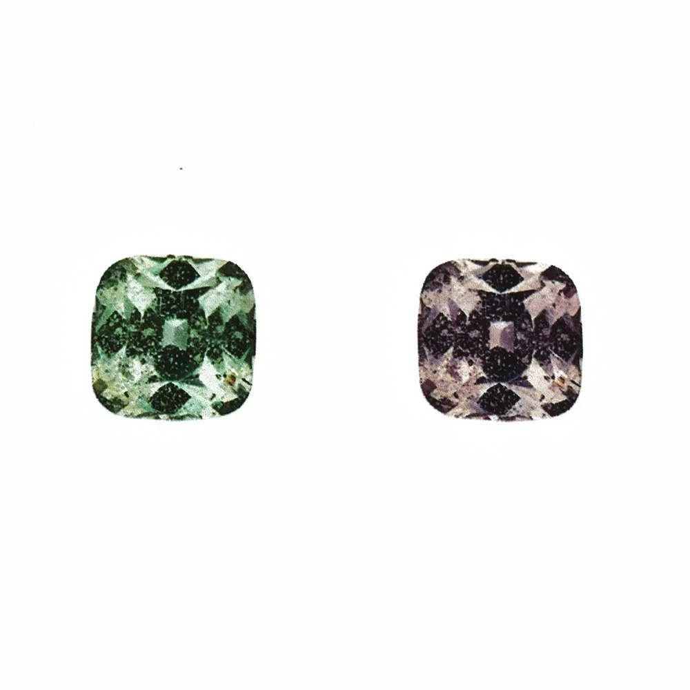 Gemstone Information: One square cushion cut, 0.94 carat, color change Alexandrite with GIA report and eight round brilliant, G/H color, SI1 diamonds with a total carat weight of 0.25