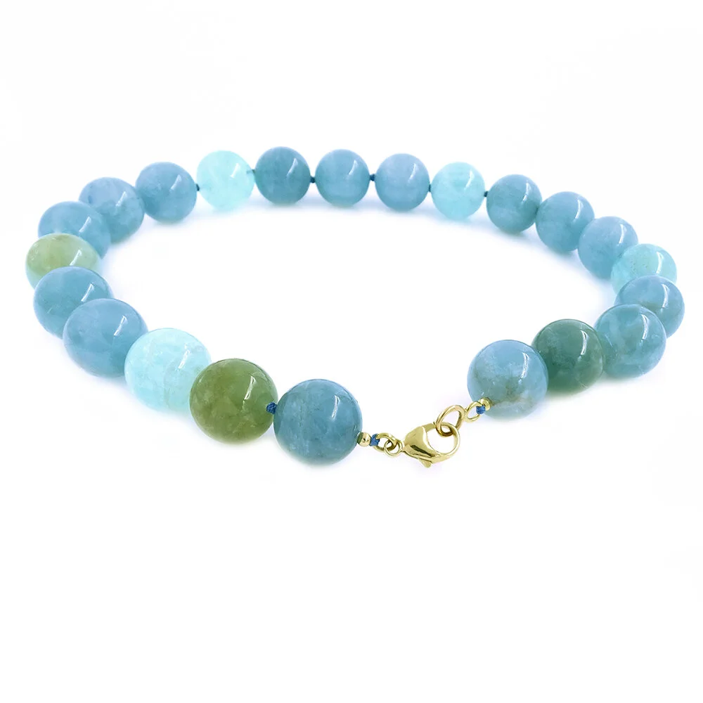 Aquamarine Bead Necklace Gold Clasp