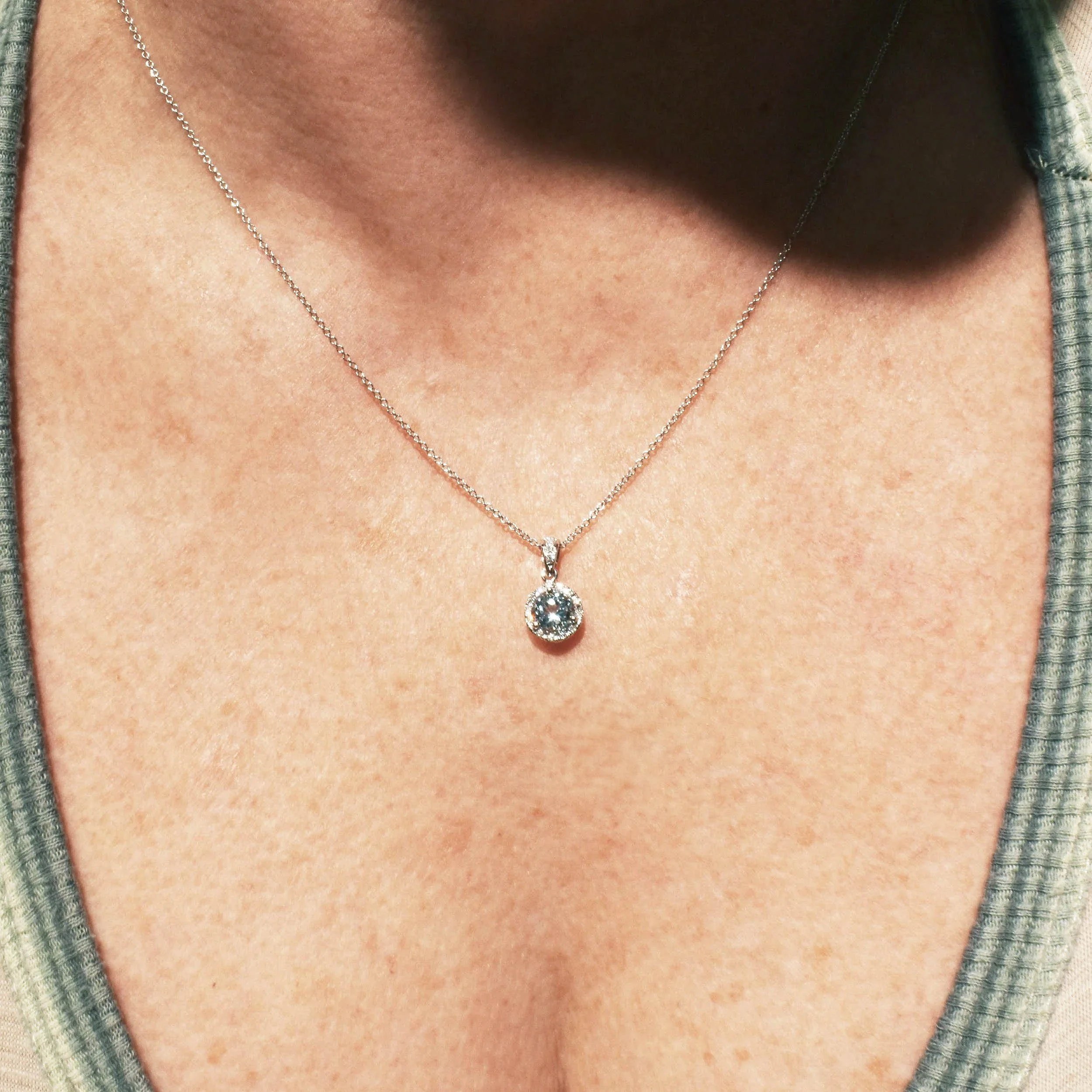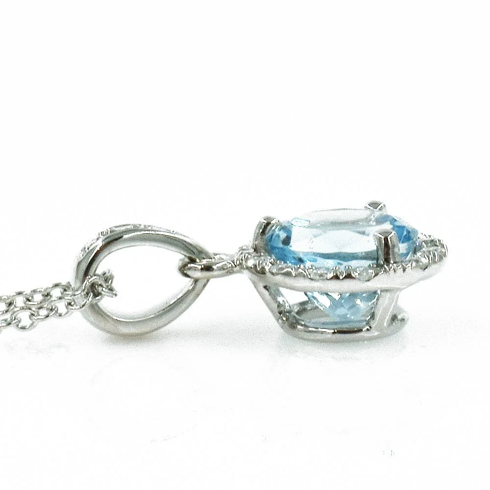 Aquamarine Diamond Halo Pendant