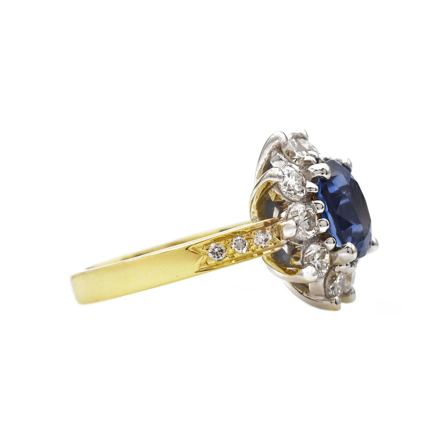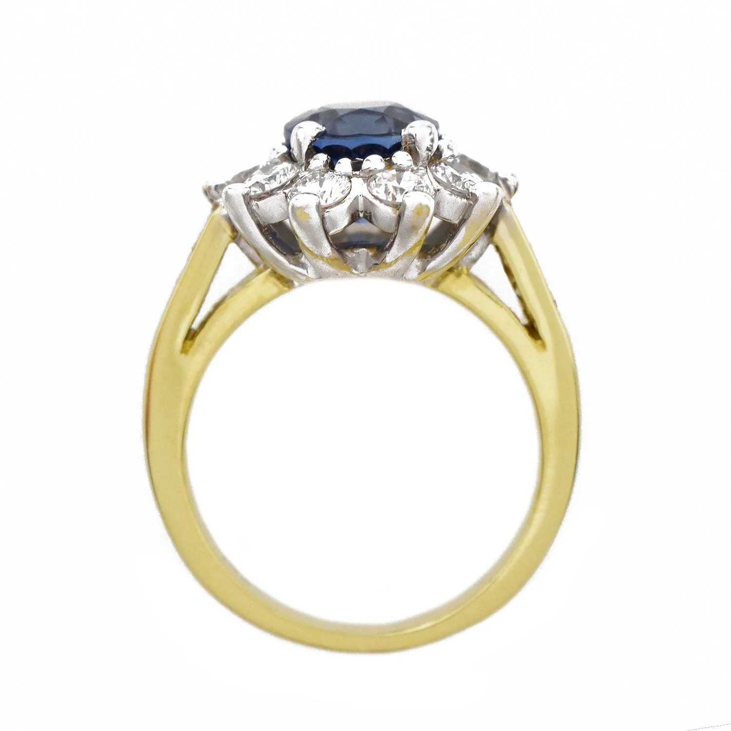 Blue Sapphire Diamond Halo Ring Yellow and White Gold