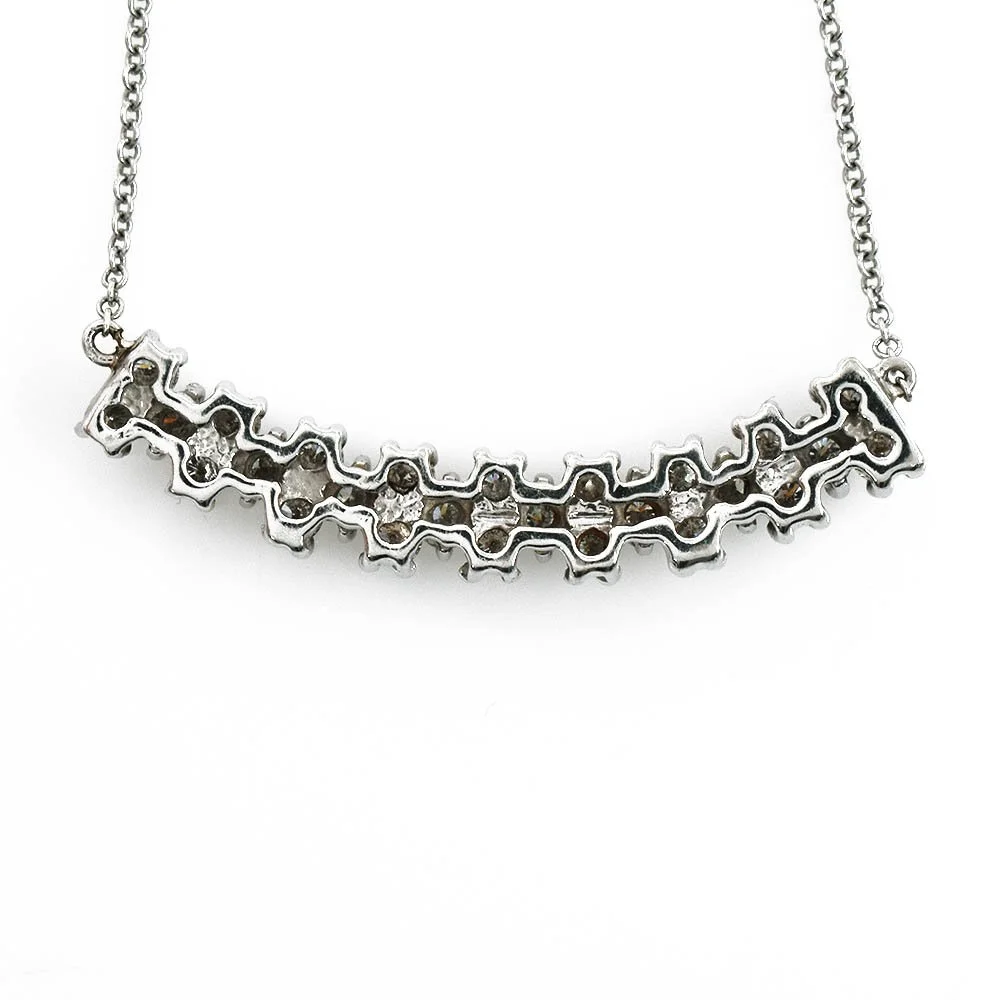 As gentle as the Mona Lisa's smile, this diamond necklace exudes elegance with its diamond encrusted curve. It shimmers day to night, to any occasion, and would layer nicely with other favorites. Understated yet elegant, this necklace could quickly become your favorite!