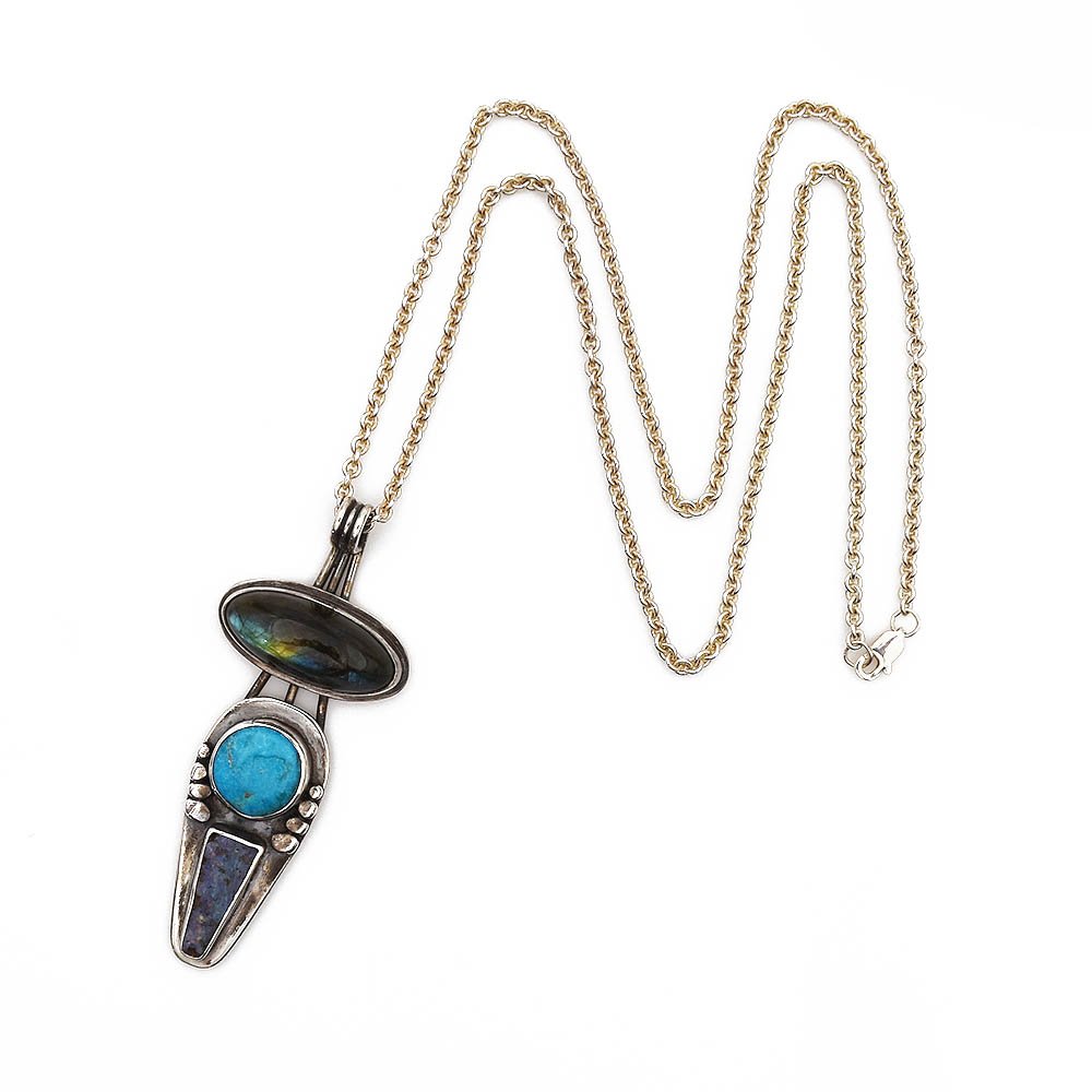 Modernist Labradorite Turquoise Opal Pendant Sterling Silver