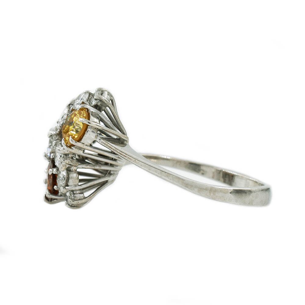 Gemstone Information: Three round colored diamonds with a total carat weight of 0.85 and ten round brilliant cut, G/H color, SI2 clarity diamonds with a total carat weight of 0.75