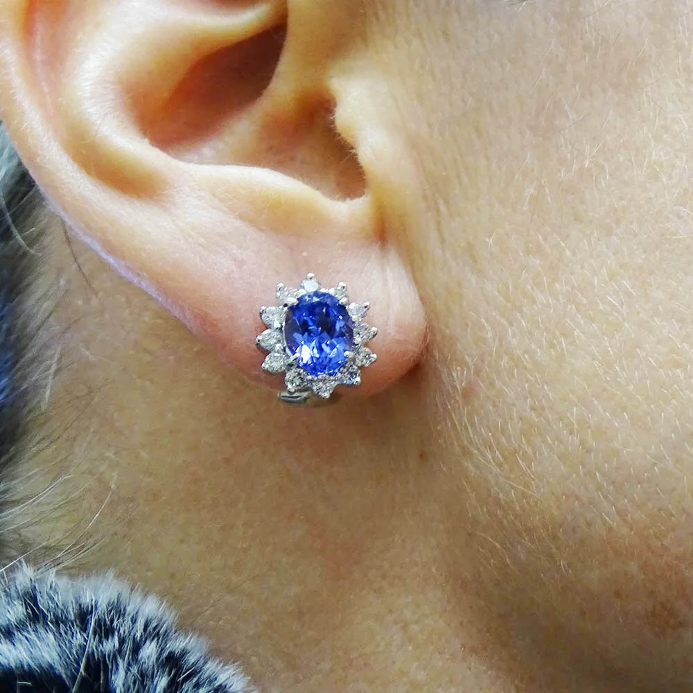 Oval Tanzanite Diamond Halo Earrings White Gold