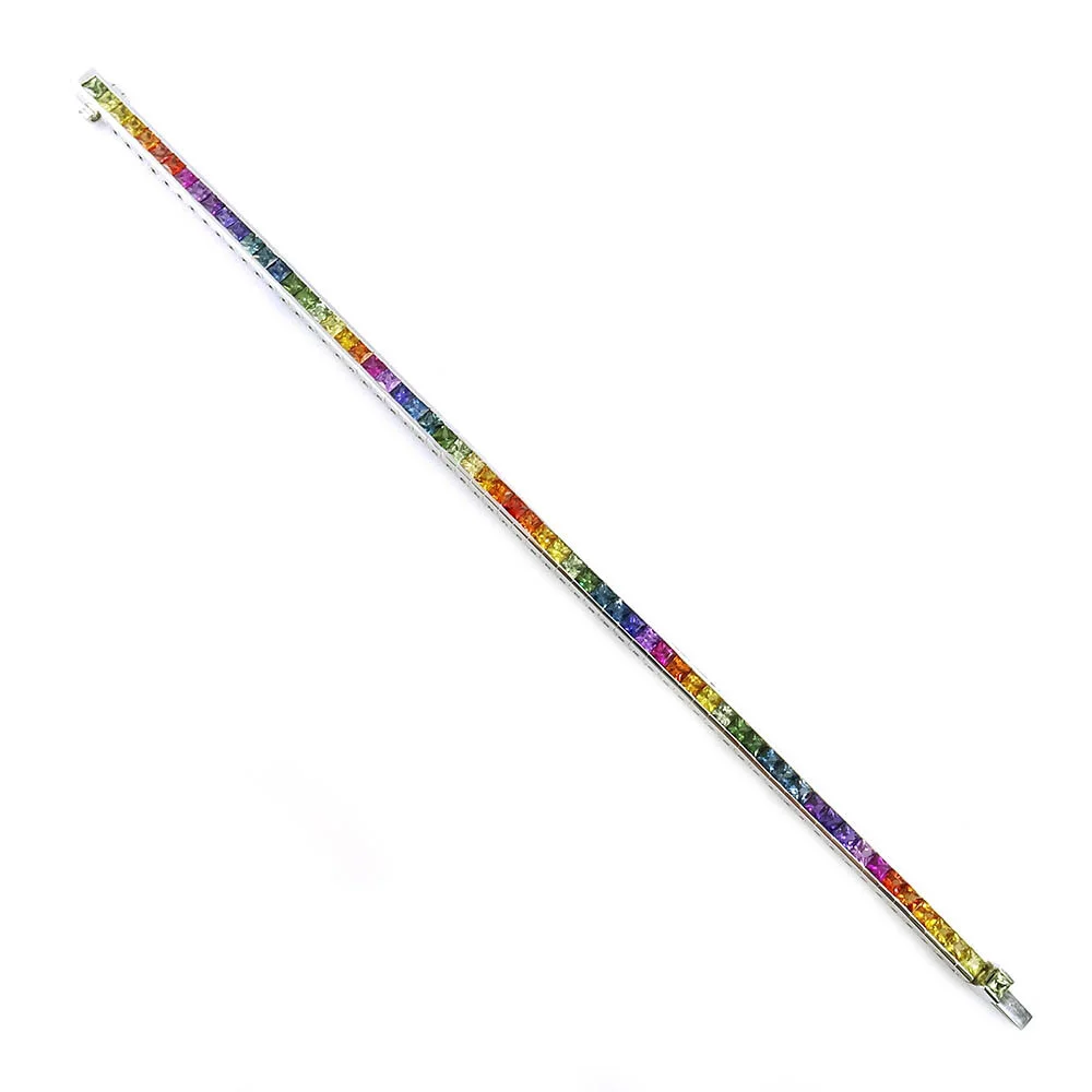 Gemstone Information: Sixty-three princess cut, multi-colored sapphires with a total carat weight of 9.45