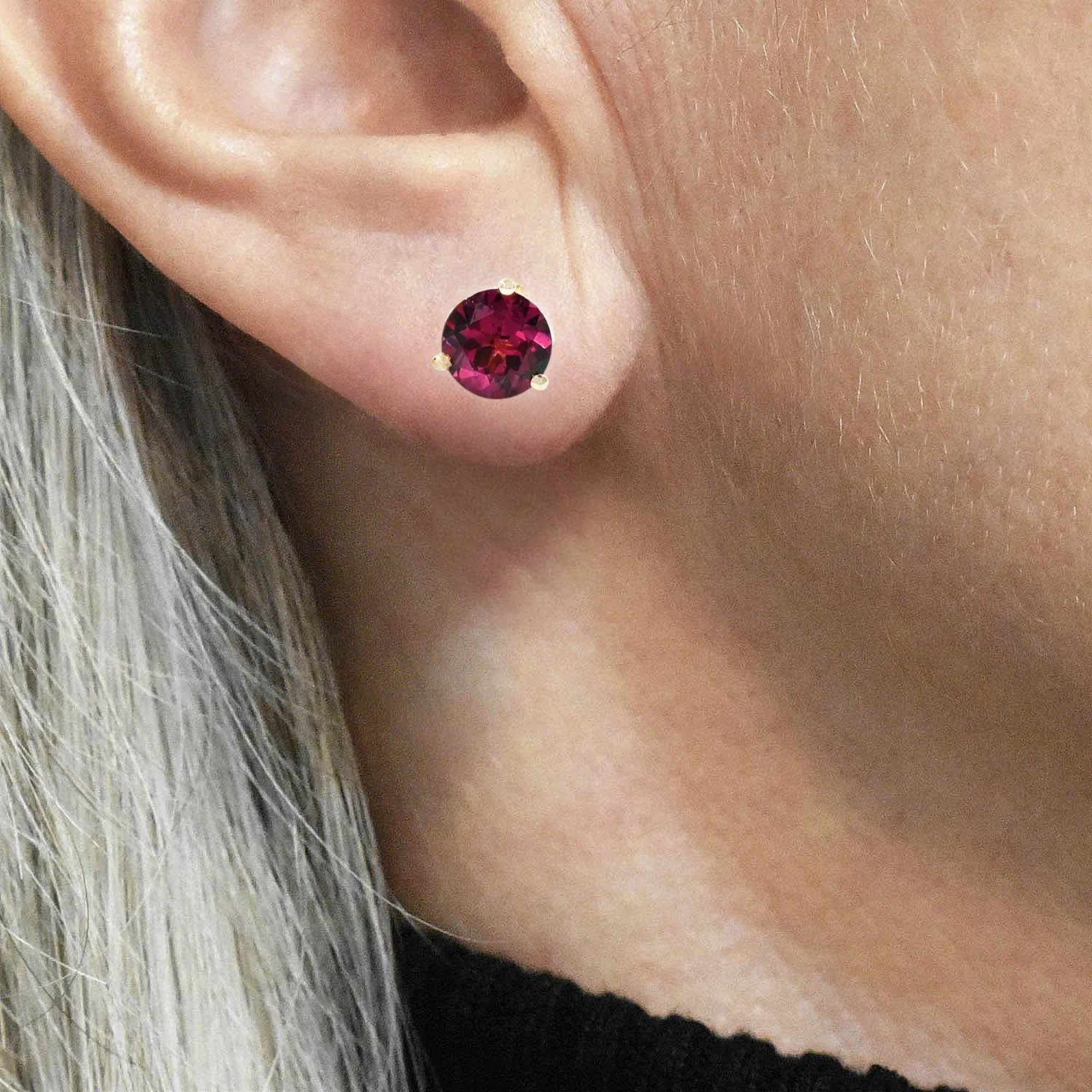 Rhodolite Garnet Gold Stud Earrings 6.5mm