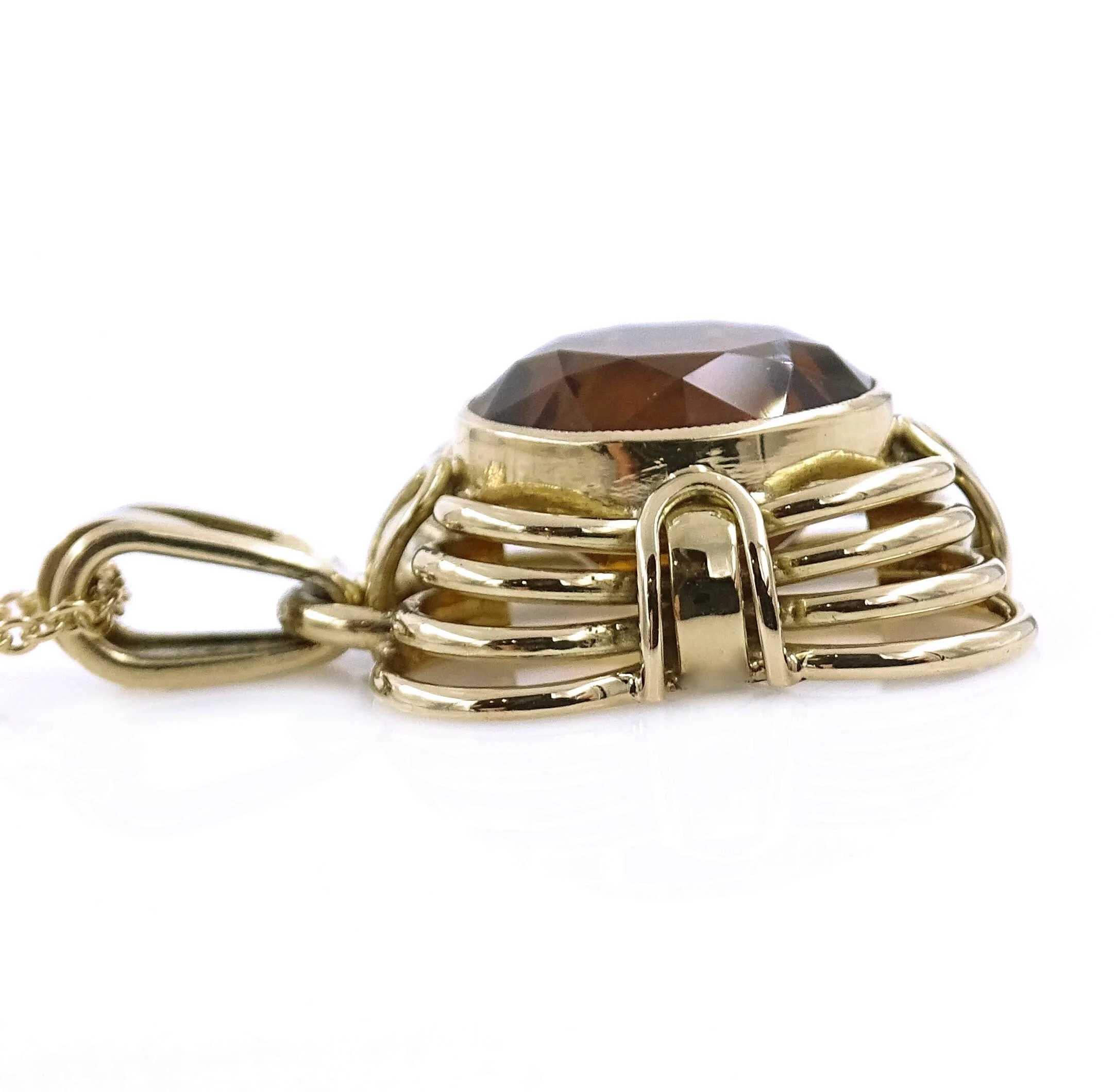 This pendant has a deep, rich golden yellow citrine that is beautifully set in an elevated yellow gold setting. The warm glow of the citrine catches the light effortlessly, adding a touch of sunshine to your look. Its modest size is perfect to wear every day to any occasion.