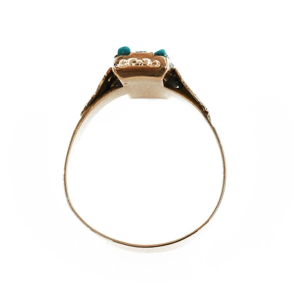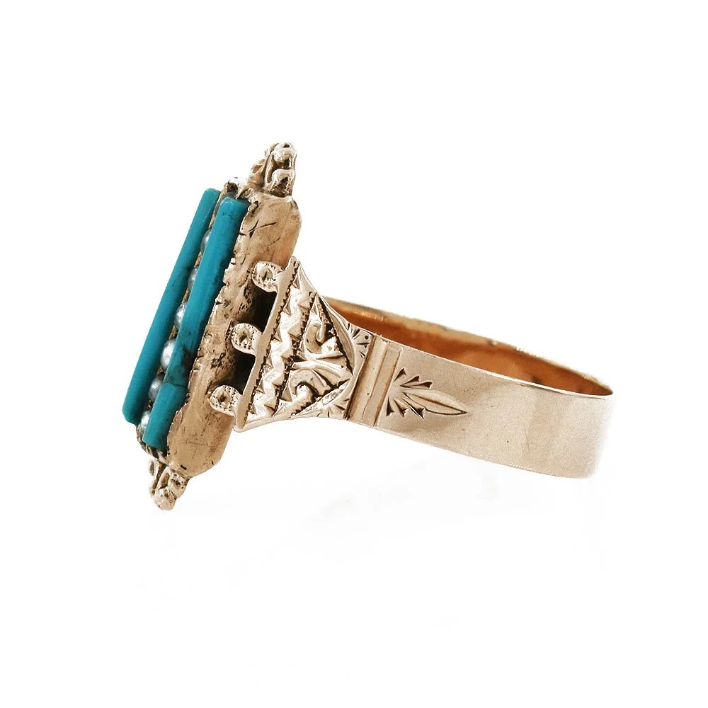 Victorian Turquoise Seed Pearl Ring Rose Gold